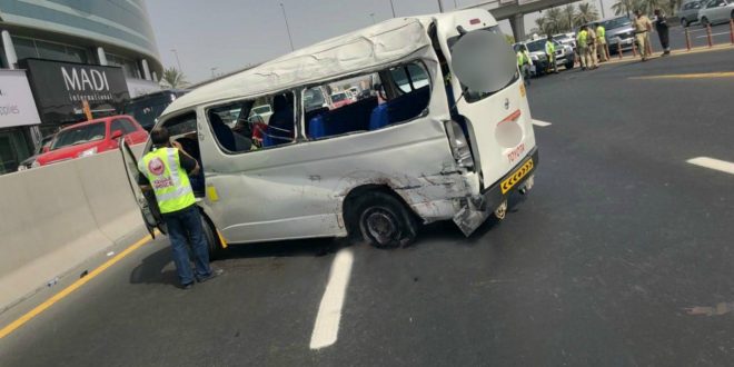 وقال العميد علي غانم مدير مركز شرطة المرقبات، إن إدارة مركز القيادة والسيطرة في الإدارة العامة للعمليات، تلقت بلاغا في الساعة 9 و42 دقيقة يفيد بوقوع حادث مروري على شارع الشيخ راشد، وعلى الفور انتقلت الدوريات وفرق الإنقاذ والإسعاف إلى موقع الحادث، ليتبين أن حافلة صغيرة كانت تقل 7 أشخاص إضافة إلى السائق قد انحرفت عن الطريق نتيجة انفجار أحد اطاراتها واصطدامها بحاجز اسمنتي وعمود إنارة، ما أسفر عن وفاة رجل وامرأة فورا، وإصابة 4 ركاب من النساء بإصابات بسيطة، ورجل بإصابة متوسطة، وتم نقلهم إلى مستشفى راشد بدبي.