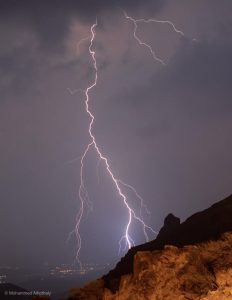 وثق مصور من خلال فيديو ومجموعة صور منظراً مهيباً وخلاباً للبرق، من فوق جبل كرا شرق مكة المكرمة، لقيت تداولاً واسعاً.