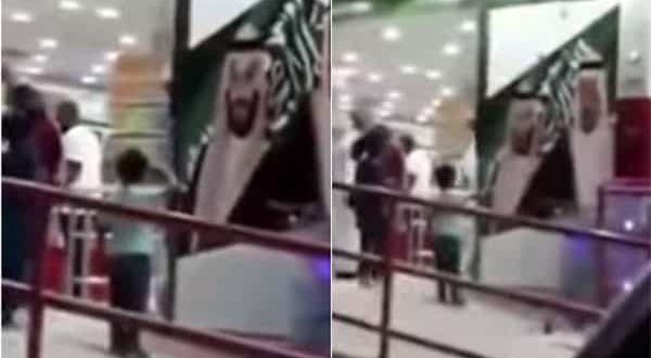 وأظهر الفيديو الطفل وهو يقف أمام صورة خادم الحرمين وولي العهد على بوابة أحد المتاجر، قبل أن يؤدي التحية العسكرية، ثم يدخل إلى المتجر بصحبة ذويه.