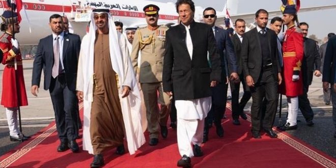 فيما صافح دولة عمران خان الوفد المرافق لصاحب السمو الشيخ محمد بن زايد آل نهيان والذي يضم كلاً من: سمو الشيخ نهيان بن زايد آل نهيان رئيس مجلس أمناء مؤسسة زايد بن سلطان آل نهيان للأعمال الخيرية والإنسانية وسمو الشيخ منصور بن زايد آل نهيان نائب رئيس مجلس الوزراء وزير شؤون الرئاسة واللواء الركن طيار الشيخ أحمد بن طحنون بن محمد آل نهيان رئيس هيئة الخدمة الوطنية والاحتياطية والشيخ خليفة بن طحنون بن محمد آل نهيان مدير تنفيذي مكتب شؤون أسر الشهداء في ديوان ولي عهد أبوظبي واللواء الشيخ محمد بن طحنون آل نهيان مدير قطاع شؤون الأمن والمنافذ ومعالي سهيل بن محمد فرج فارس المزروعي وزير الطاقة والصناعة ومعالي محمد بن أحمد البواردي وزير دولة لشؤون الدفاع ومعالي الدكتور سلطان بن أحمد الجابر وزير دولة ومعالي علي بن حماد الشامسي نائب الأمين العام للمجلس الأعلى للأمن الوطني ومعالي الدكتور أحمد مبارك المزروعي الأمين العام للمجلس التنفيذي ومعالي خلدون خليفة المبارك رئيس جهاز الشؤون التنفيذية ومعالي مبارك راشد المنصوري محافظ المصرف المركزي ومعالي فارس محمد المزروعي المستشار في وزارة شؤون الرئاسة ومعالي فارس خلف المزروعي رئيس لجنة إدارة المهرجانات والبرامج الثقافية والتراثية في أبوظبي وسعادة محمد مبارك المزروعي وكيل ديوان ولي عهد أبوظبي وسعادة الفريق الركن جمعة أحمد البواردي الفلاسي مستشار نائب القائد الأعلى للقوات المسلحة وسعادة حمد عبيد إبراهيم سالم الزعابي سفير الدولة لدى جمهورية باكستان الإسلامية.