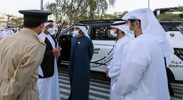 وتفقد صاحب السمو الشيخ محمد بن راشد آل مكتوم، سيارة غياث التابعة لشرطة دبي، ثم سلم سموه وسام الطيران للملازم ثاني طيار دانه المازمي من شرطة دبي، والملازم ثاني طيار مهره بن حماد.