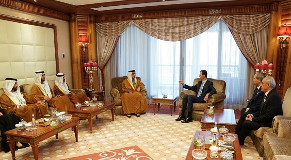 ونقل سموه تحيات صاحب السمو الشيخ محمد بن زايد آل نهيان رئيس الدولة "حفظه الله" إلى الرئيس السوري الذي أعرب بدوره عن شكره وتقديره لصاحب السمو رئيس الدولة لمواقف دولة الإمارات الداعمة لسوريا ودورها في عودتها إلى جامعة الدول العربية والصف العربي.