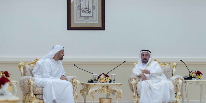استقبل صاحب السمو الشيخ الدكتور سلطان بن محمد القاسمي عضو المجلس الأعلى حاكم الشارقة، صباح اليوم، سمو الشيخ ذياب بن محمد بن زايد آل نهيان رئيس مجلس إدارة شركة الاتحاد للقطارات، وذلك في دارة الدكتور سلطان القاسمي.