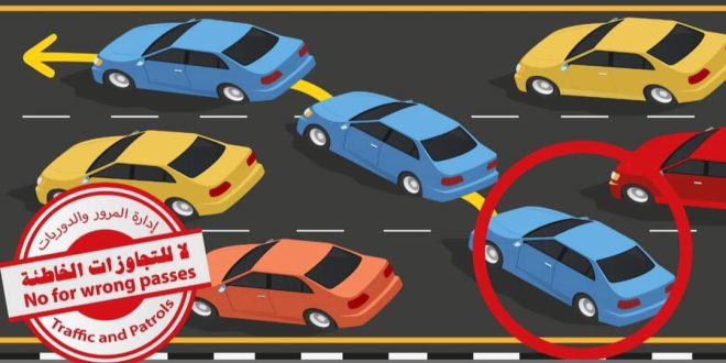وأوضح المقدم سيف الفلاسي أن التجاوز من كتف الطريق من أبرز التجاوزات الخاطئة والتي قد تعرض حياة السائق والآخرين للخطر، إضافة إلى الانحراف المفاجئ، وتجاوز الشاحنات بصورة خطرة، حيث تصل غرامات هذه التجاوزات إلى 3000 درهم وسحب رخصة القيادة لمدة عام، بالإضافة إلى النقاط السوداء في بعض المخالفات.