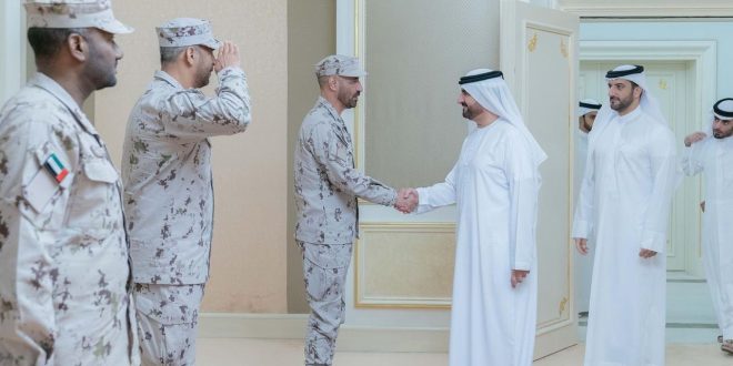 ورحب سموه بالوفد الذي ترأسه اللواء الركن سالم سعيد غافان الجابري قائد الحرس الوطني، واطلع على أبرز المهام والواجبات والخطط الاستراتيجية المستقبلية للقيادة التي تهدف إلى رفع كفاءة العمل والارتقاء بالأداء المهني وبما يحقق الأهداف الوطنية، إضافة إلى آلية العمل العسكري والدعم الذي تقدمه القيادة للمنشآت الحيوية في الدولة.
