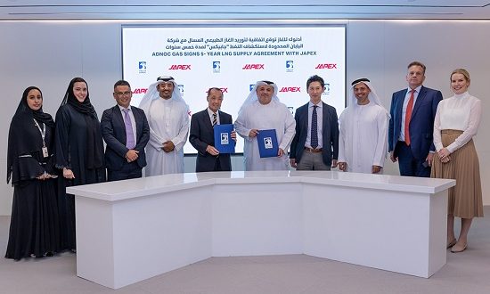 أعلنت "أدنوك للغاز" بي إل سي، الشركة العالمية المتخصصة في معالجة الغاز، اليوم، عن توقيع اتفاقية لتوريد الغاز الطبيعي المسال لمدة 5 سنوات مع شركة اليابان المحدودة لاستكشاف النفط "جابيكس"، تتراوح قيمتها بين 1.65 مليار درهم (450 مليون دولار أمريكي) و2 مليار درهم (550 مليون دولار أمريكي).