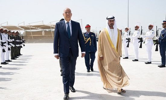 خليفة بن طحنون يستقبل وزير الدفاع اليوناني في واحة الكرامة