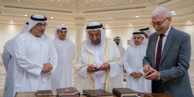 الرئيسية / محلي / بالصور.. حاكم الشارقة يزور دار المخطوطات ويهديها دفعة جديدة من أندر الوثائق