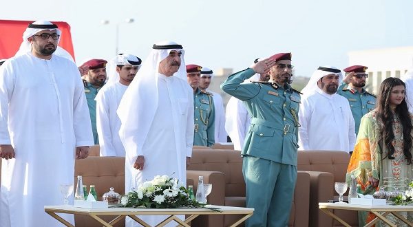 ووصل صاحب السمو حاكم أم القيوين وسمو ولي عهده والشيوخ والمسؤولين، حيث بدأ الحفل وعزفت فِرْقَة موسيقى الشرطة السلام الوطني، وتضمن الحفل، عدداً من اللوحات الغنائية الوطنية لطالبات منطقة أم القيوين التعليمية وتبع ذلك الطابور العسكري لرجال القيادة العامة لشرطة أم القيوين المؤلف من سرايا المشاة ابتداءً من سرية الضباط، ثم سرية مرشحي طلبة كُلْيَة الشرطة الاتحادية، وسرية ضباط الصف والأفراد وفريق الموسيقى العسكرية، وسرية قوات الأمن الخاصة، وفرقة رجال الدفاع المدني ووحدة الكلاب البوليسية "K9"، إضافة إلى عرض لمركبات وآليات ودوريات الشرطة والدفاع المدني وقوات الأمن الخاصة.