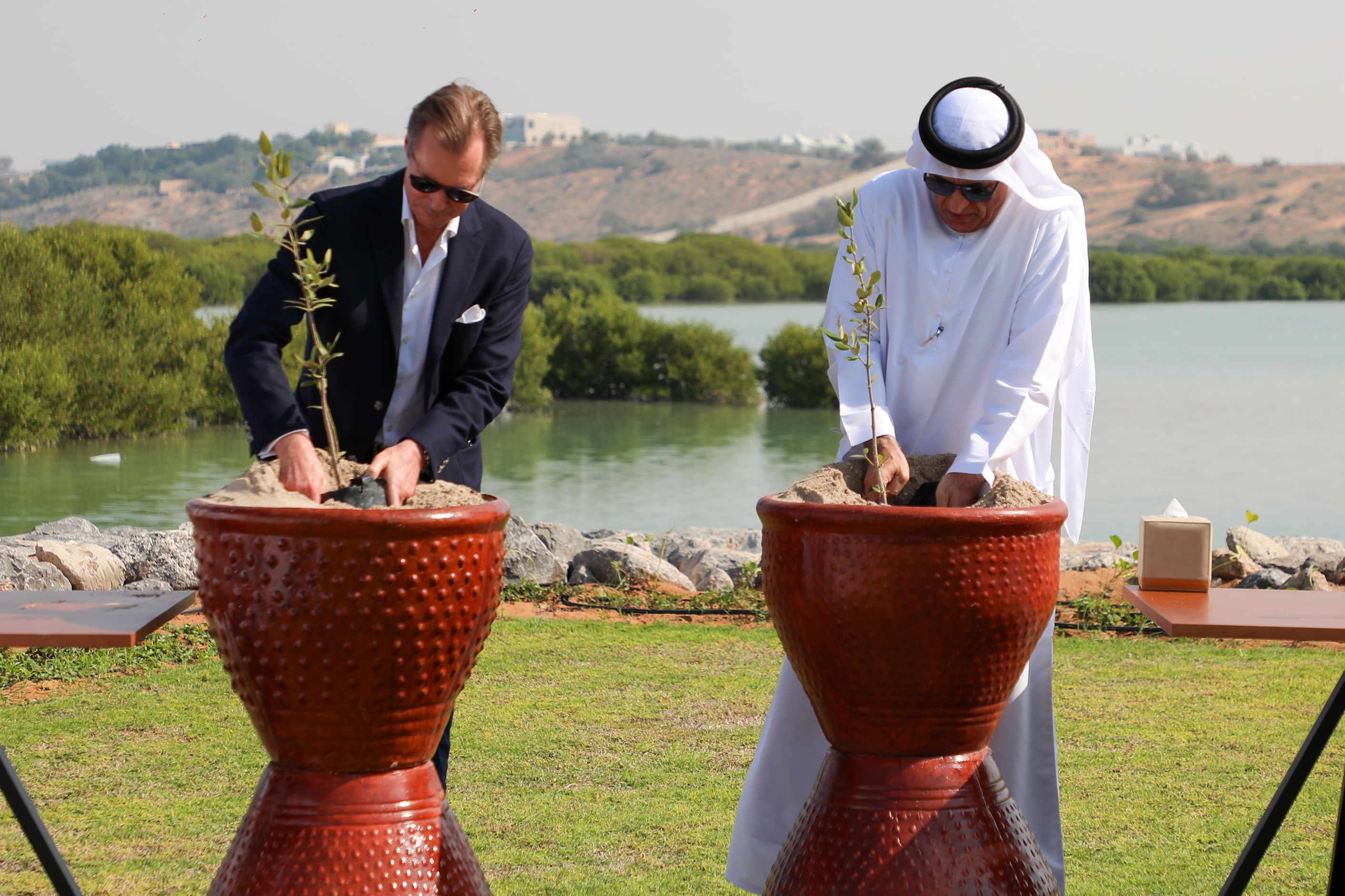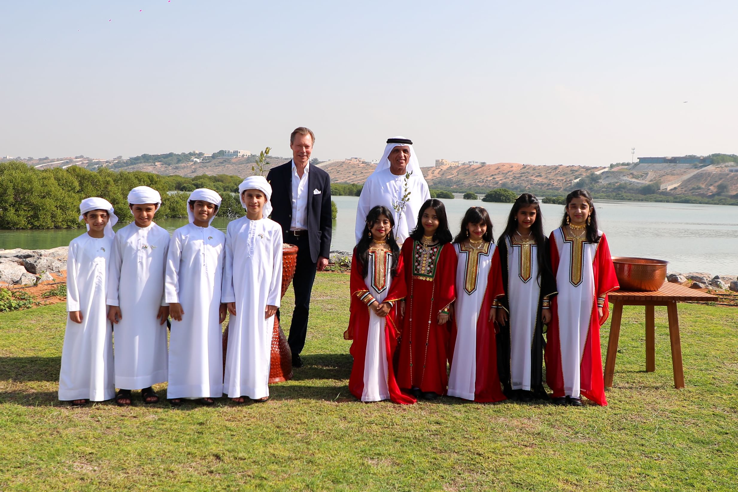 وشارك صاحب السمو حاكم رأس الخيمة يرافقه الدوق هنري، عددا من طلبة مدارس رأس الخيمة بزراعة أشجار القرم في منتجع أنانتارا ميناء العرب.