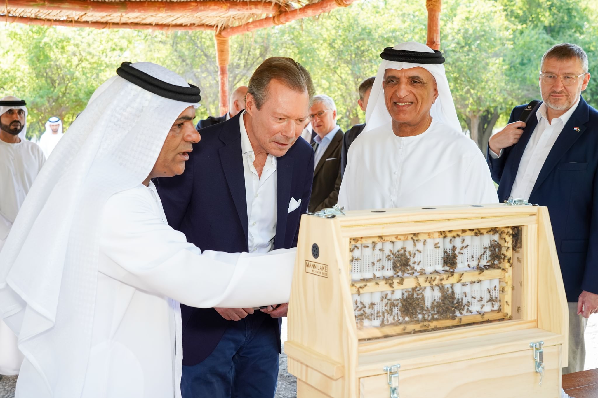 واصطحب صاحب السمو حاكم رأس الخيمة، دوق لوكسمبورغ بمركبة "ربدان ون" أول مركبة إماراتية كهربائية صديقة للبيئة تحمل شعار "صنعت في أبوظبي"، في جولة شملت محمية السييات لتربية النحل في وداي البيح، حيث اطلع الوفد الضيف على طرق إنتاج أجود أنوع العسل في بيئتها الطبيعية في المناطق الجبلية بإمارة رأس الخيمة.
