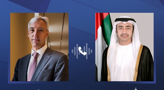 بحث سمو الشيخ عبدالله بن زايد آل نهيان، وزير الخارجية، خلال اتصال هاتفي مع معالي جواو كرافينيو، وزير خارجية جمهورية البرتغال، التطورات في منطقة الشرق الأوسط وتداعيات الأزمة الراهنة لا سيما على الصعيد الإنساني.