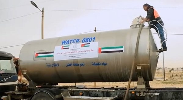 بدء توزيع مياه شرب محطات التحلية الإماراتية على مراكز الإيواء في غزة