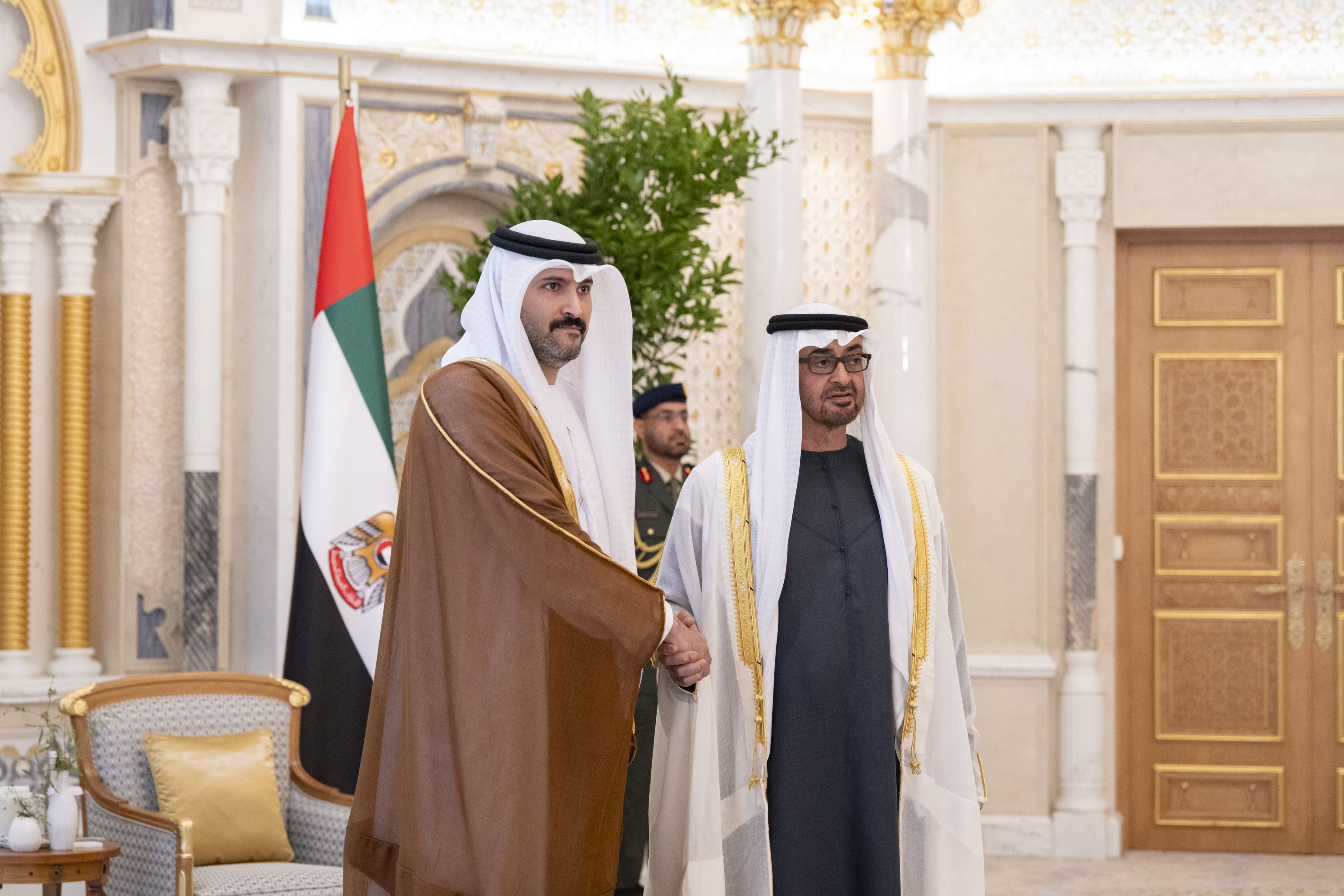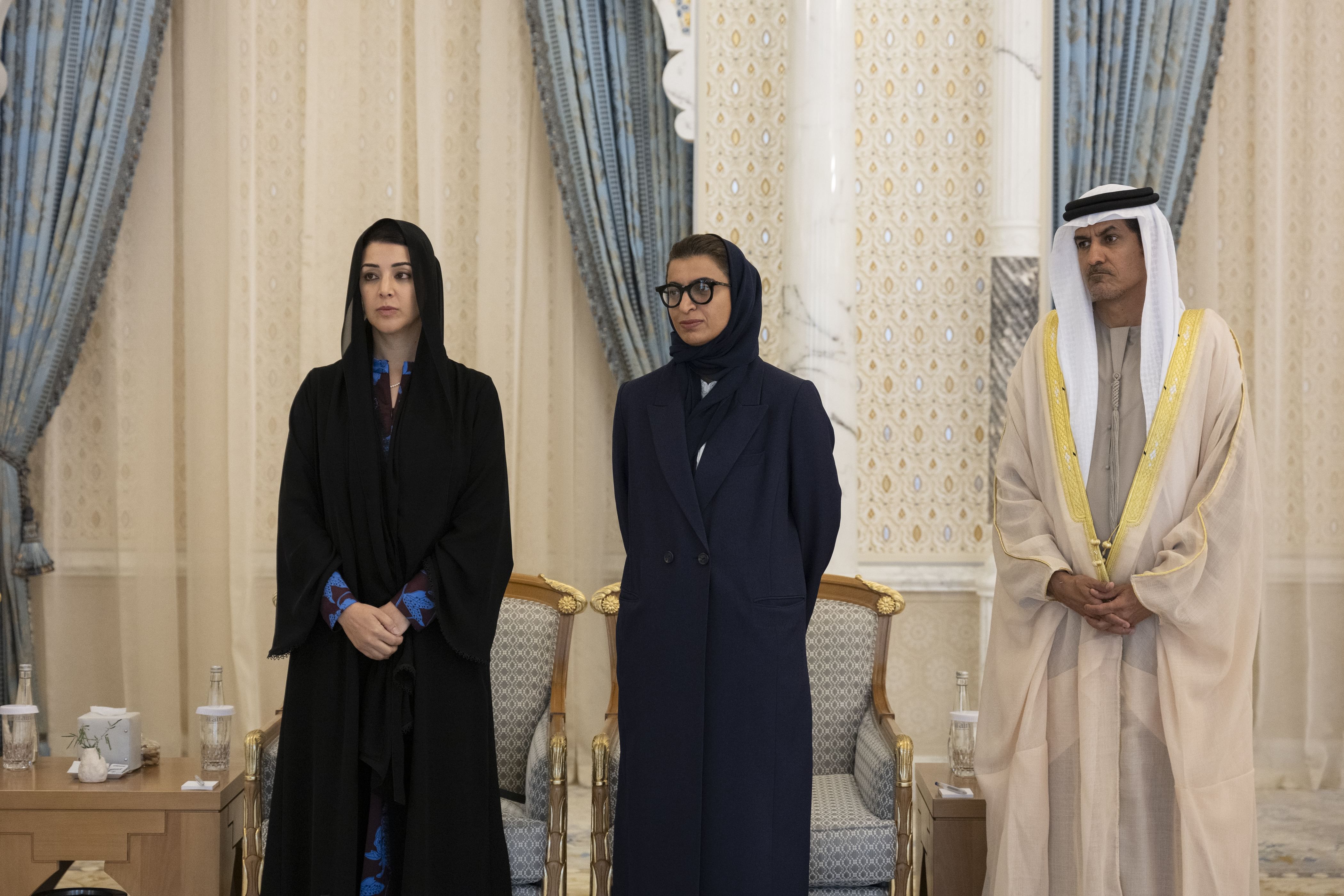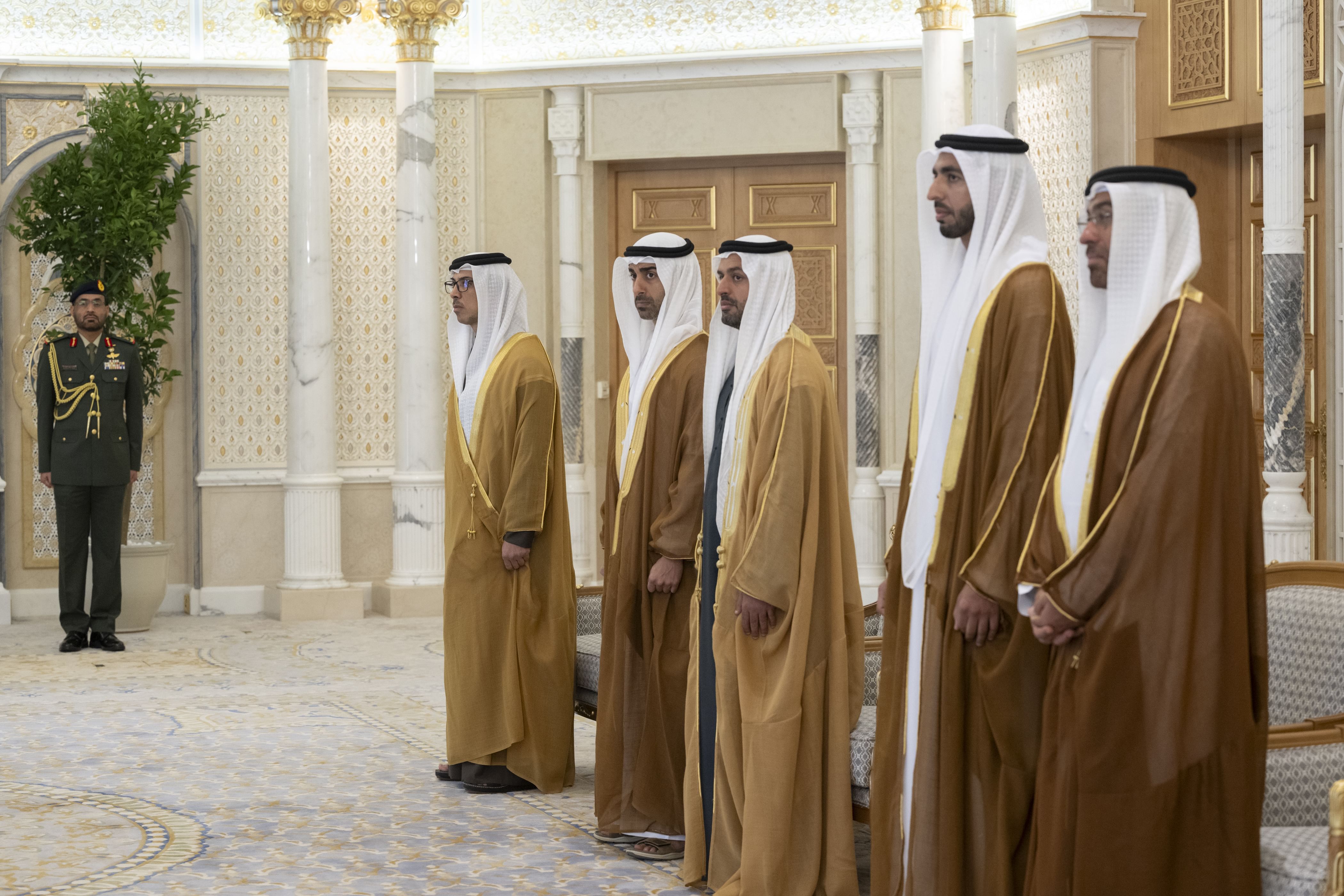 ةحضر مراسم أداء اليمين سمو الشيخ حمدان بن محمد بن زايد آل نهيان ومعالي الشيخ محمد بن حمد بن طحنون آل نهيان مستشار الشؤون الخاصة في ديوان الرئاسة ومعالي علي بن حماد الشامسي الأمين العام للمجلس الأعلى للأمن الوطني ومعالي الشيخ شخبوط بن نهيان آل نهيان وزير دولة ومعالي نورة بنت محمد الكعبي وزيرة دولة ومعالي أحمد بن علي محمد الصايغ وزير دولة.