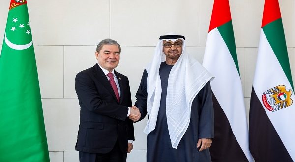 محمد بن زايد يستقبل رئيس مجلس الشيوخ  في تركمانستان