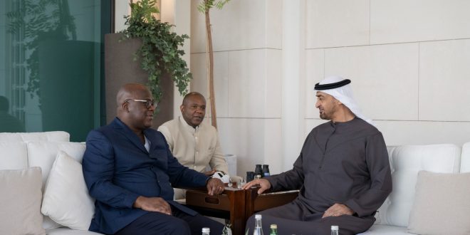 بحث صاحب السمو الشيخ محمد بن زايد آل نهيان رئيس الدولة "حفظه الله"، مع فخامة فيلكس تشيسكيدي رئيس جمهورية الكونغو الديمقراطية، مستوى تطور علاقات التعاون في مختلف المجالات خاصة فرص تنويع الاستثمارات وتحفيزها في القطاعات التنموية والاقتصادية والتجارية والطاقة المتجددة وغيرها والتي تدعم التنمية والتقدم والازدهار المستدام في البلدين وتخدم مصالحهما المشتركة.