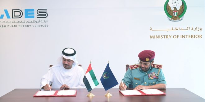 وقعت وزارة الداخلية مذكرة تفاهم مع شركة أبوظبي لخدمات الطاقة، المتخصصة في بناء قدرات كفاءة الطاقة والتابعة لشركة أبوظبي الوطنية للطاقة (طاقة)، بهدف توطيد التعاون بين الجانبين في مجالات الاستدامة البيئية ورفع كفاءة الطاقة في المباني واستدامتها لترشيد استهلاك الماء والكهرباء.