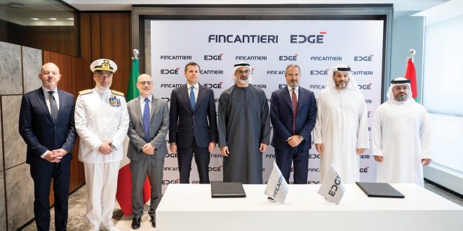 شهد سموّ الشيخ خالد بن محمد بن زايد آل نهيان، ولي عهد أبوظبي، مراسم توقيع اتفاقية شراكة استراتيجية بين مجموعة "إيدج"، الرائدة عالمياً في مجال الدفاع والتكنولوجيا المتقدمة، والشركة الإيطالية "فينكانتييري"، لإطلاق "ميسترال"، المشروع المشترك لبناء السفن بين الشركتين في أبوظبي.