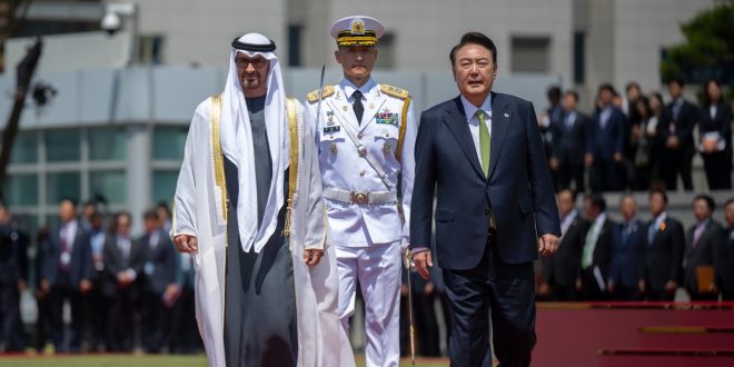 استقبل فخامة يون سوك يول، رئيس جمهورية كوريا الصديقة، اليوم، صاحب السمو الشيخ محمد بن زايد آل نهيان رئيس الدولة، حفظه الله، الذي يقوم بزيارة دولة إلى كوريا تستغرق يومين.
