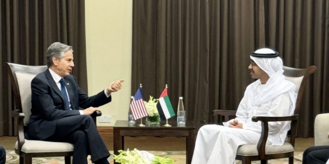 التقى سمو الشيخ عبدالله بن زايد آل نهيان وزير الخارجية معالي أنتوني بلينكن وزير خارجية الولايات المتحدة الأميركية، على هامش أعمال المؤتمر الدولي للاستجابة الإنسانية الطارئة في غزة الذي عقد اليوم في مركز الملك الحسين بن طلال للمؤتمرات بمنطقة البحر الميت في المملكة الأردنية الهاشمية.