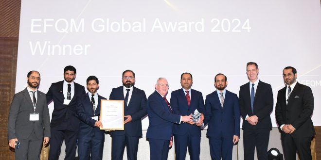 وتُعدّ الجائزة العالمية للمؤسسة الأوروبية لإدارة الجودة، جائزةً مرموقةً تكرم المؤسسات المتميزة في العالم من القطاعات العامة والخاصة وغير الربحية، التي أظهرت سجلاً حافلاً بالنجاح في تحويل الاستراتيجية إلى نتائج ملموسة، وتواصل العمل على تحسين أدائها.