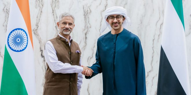 بحث سمو الشيخ عبدالله بن زايد آل نهيان، وزير الخارجية، مع معالي الدكتور سوبرامنيام جاي شانكار، وزير الشؤون الخارجية في جمهورية الهند، علاقات الصداقة التاريخية بين البلدين والتقدم المحرز في مختلف مسارات التعاون الثنائي في إطار الشراكة الاستراتيجية الشاملة، والشراكة الاقتصادية الشاملة بين دولة الإمارات وجمهورية الهند.