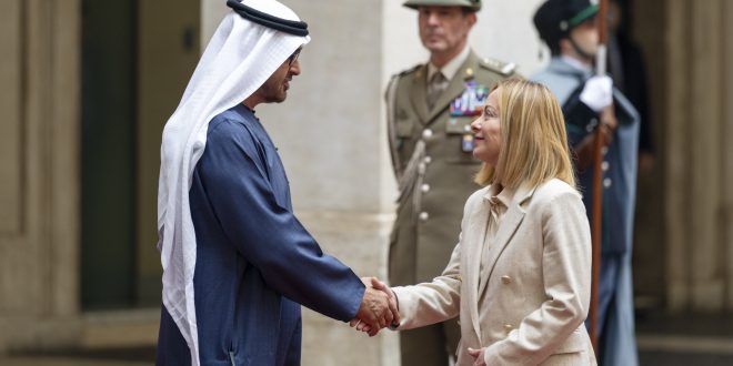 شهد صاحب السمو الشيخ محمد بن زايد آل نهيان رئيس الدولة "حفظه الله"، ومعالي جورجا ميلوني رئيسة وزراء الجمهورية الإيطالية، اليوم، مراسم تبادل اتفاقيات ومذكرات تفاهم بهدف تعزيز التعاون بين دولة الإمارات وإيطاليا في إطار الشراكة الاستراتيجية التي تجمعهما، وذلك في إطار "زيارة دولة" يقوم بها سموه إلى إيطاليا.