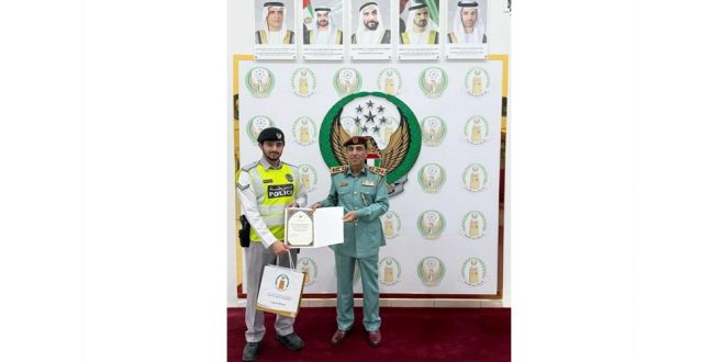 نيابة عن سعادة اللواء علي عبد الله بن علوان النعيمي، قائد عام شرطة رأس الخيمة، كرم سعادة العميد أحمد الصم النقبي، مدير عام العمليات المركزية، بحضور العميد ركن دكتور يوسف بن يعقوب، نائب مدير عام العمليات المركزية، الشرطي أول عبدالله سعيد الشحي، تقديراً لمبادرته بمساعدة شخص آسيوي بتغيير إطار مركبته الذي تعرض للتلف خلال قيادته لها على شارع الشيخ محمد بن زايد في صورة تجسد حرص منتسبي القيادة على مد يد العون والمساعدة وتطبيق مفهوم جودة الحياة عمليا على أرض الواقع .