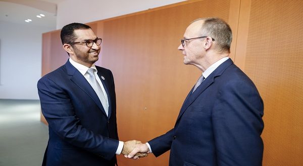 وخلال لقائه مع المستشار الألماني، نقل معالي الدكتور سلطان أحمد الجابر تحيات قيادة دولة الإمارات، مؤكداً متانة العلاقات الإستراتيجية التي تربط البلدين، والحرص على تطويرها بما يسهم في تعزيز التكامل وتوسيع الشراكة على المستويات المحلية والإقليمية والدولية.