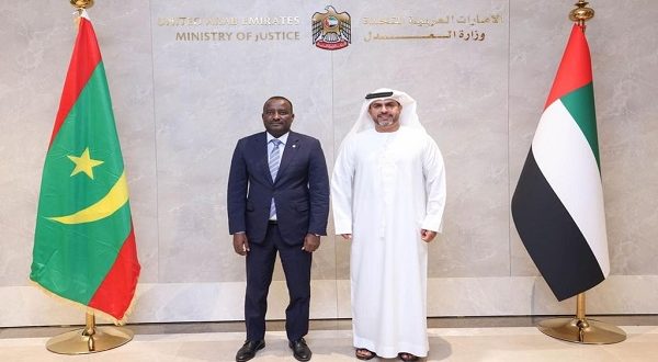 بحث معالي عبدالله سلطان بن عواد النعيمي، وزير العدل، ومعالي محمد ولد اسويدات، وزير العدل في الجمهورية الإسلامية الموريتانية، والوفد المرافق، سبل تعزيز التعاون القانوني والقضائي الثنائي بين البلدين، وذلك خلال اللقاء الذي عُقد في مكتب معالي النعيمي بديوان الوزارة في أبوظبي.