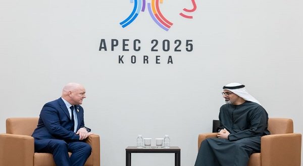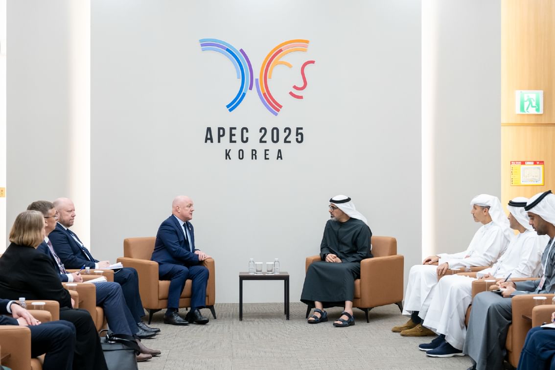 التقى سمو الشيخ خالد بن محمد بن زايد آل نهيان، ولي عهد أبوظبي، اليوم الجمعة، 31 أكتوبر 2025، معالي كريستوفر لاكسن، رئيس وزراء نيوزيلندا، على هامش انعقاد أعمال منتدى التعاون الاقتصادي لدول آسيا والمحيط الهادئ، والذي تشارك فيه دولة الإمارات كضيف شرف بدعوة من رئيس جمهورية كوريا.