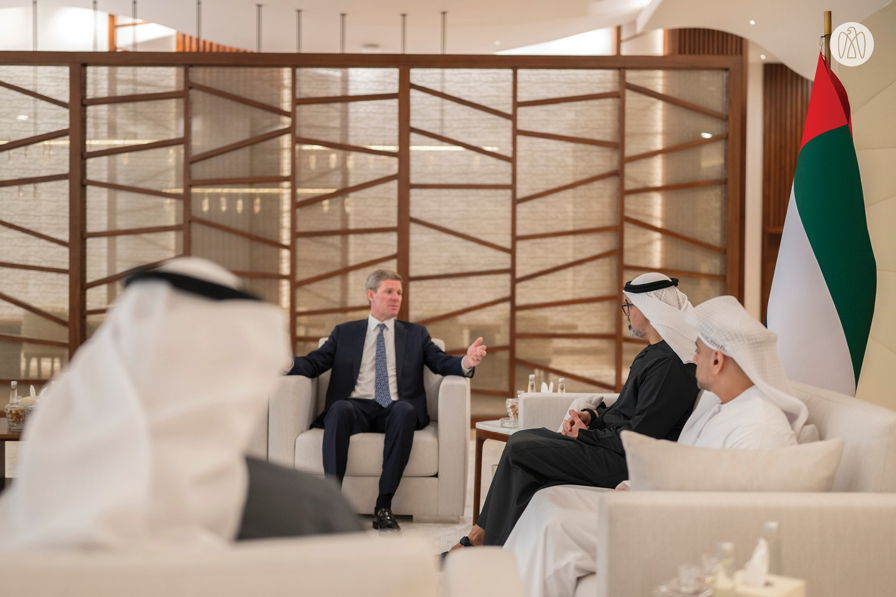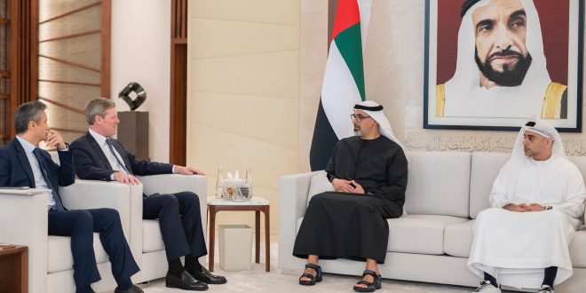 التقى سمو الشيخ خالد بن محمد بن زايد آل نهيان، ولي عهد أبوظبي رئيس المجلس التنفيذي لإمارة أبوظبي، ريان ماكينيرني، الرئيس التنفيذي لشركة "فيزا".