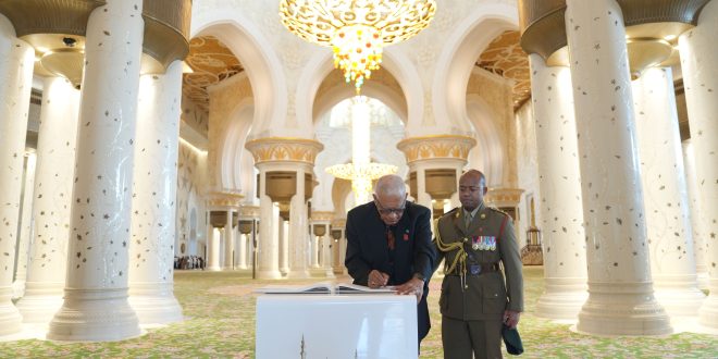 زار فخامة راتو نايكاما لالابالافو، رئيس جمهورية فيجي، جامع الشيخ زايد الكبير في أبوظبي، يرافقه سعادة سانايلا لاقاي، القائم بالأعمال في سفارة جمهورية فيجي لدى الدولة، والوفد المرافق.