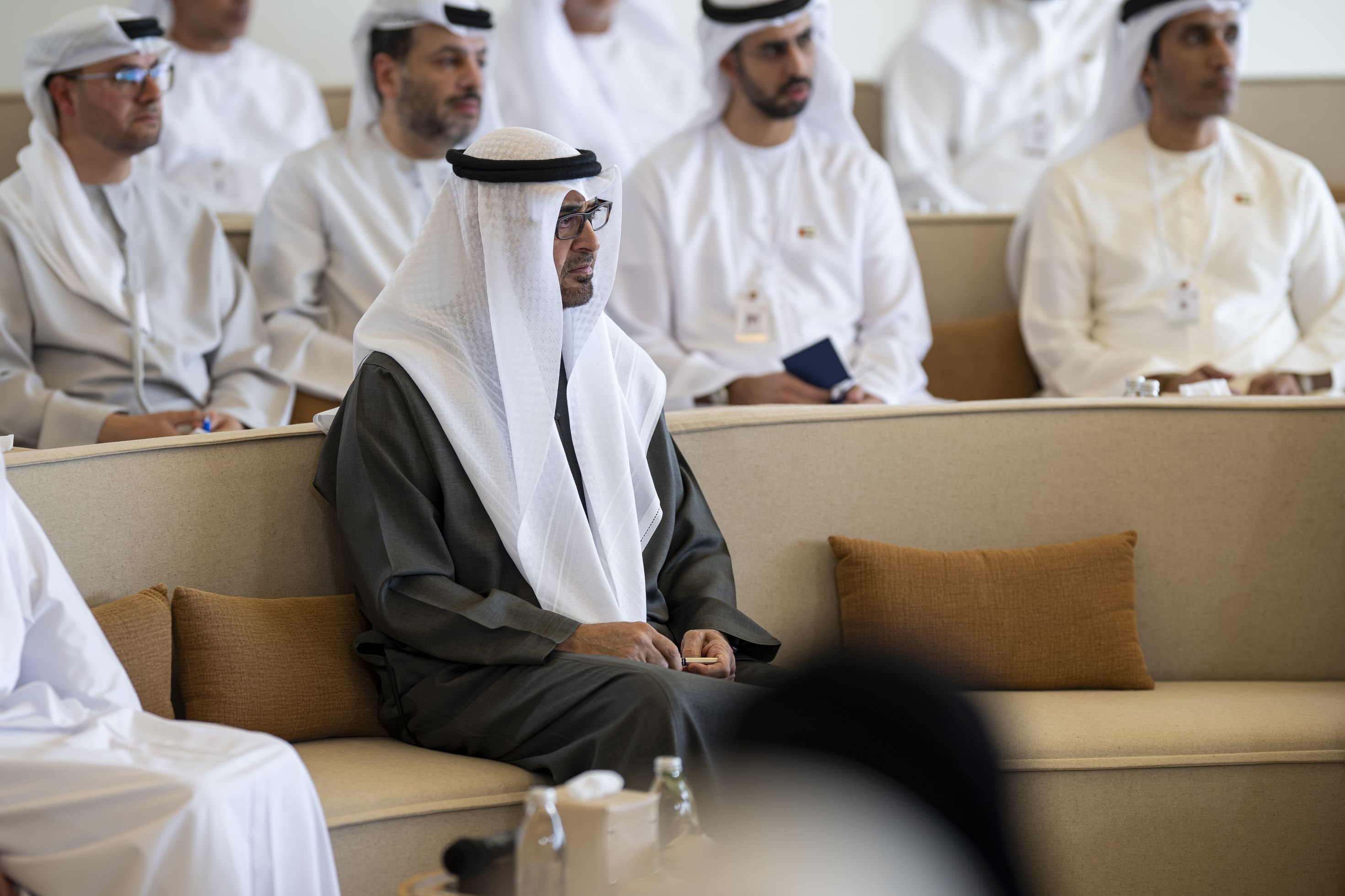 حضر الجلسة سمو الشيخ خالد بن محمد بن زايد آل نهيان ولي عهد أبوظبي، وسمو الشيخ سلطان بن محمد بن سلطان القاسمي ولي عهد ونائب حاكم الشارقة، وسمو الشيخ عمار بن حميد النعيمي ولي عهد عجمان، والفريق سمو الشيخ سيف بن زايد آل نهيان نائب رئيس مجلس الوزراء وزير الداخلية، ومعالي الشيخ محمد بن حمد بن طحنون آل نهيان مستشار صاحب السمو رئيس الدولة.