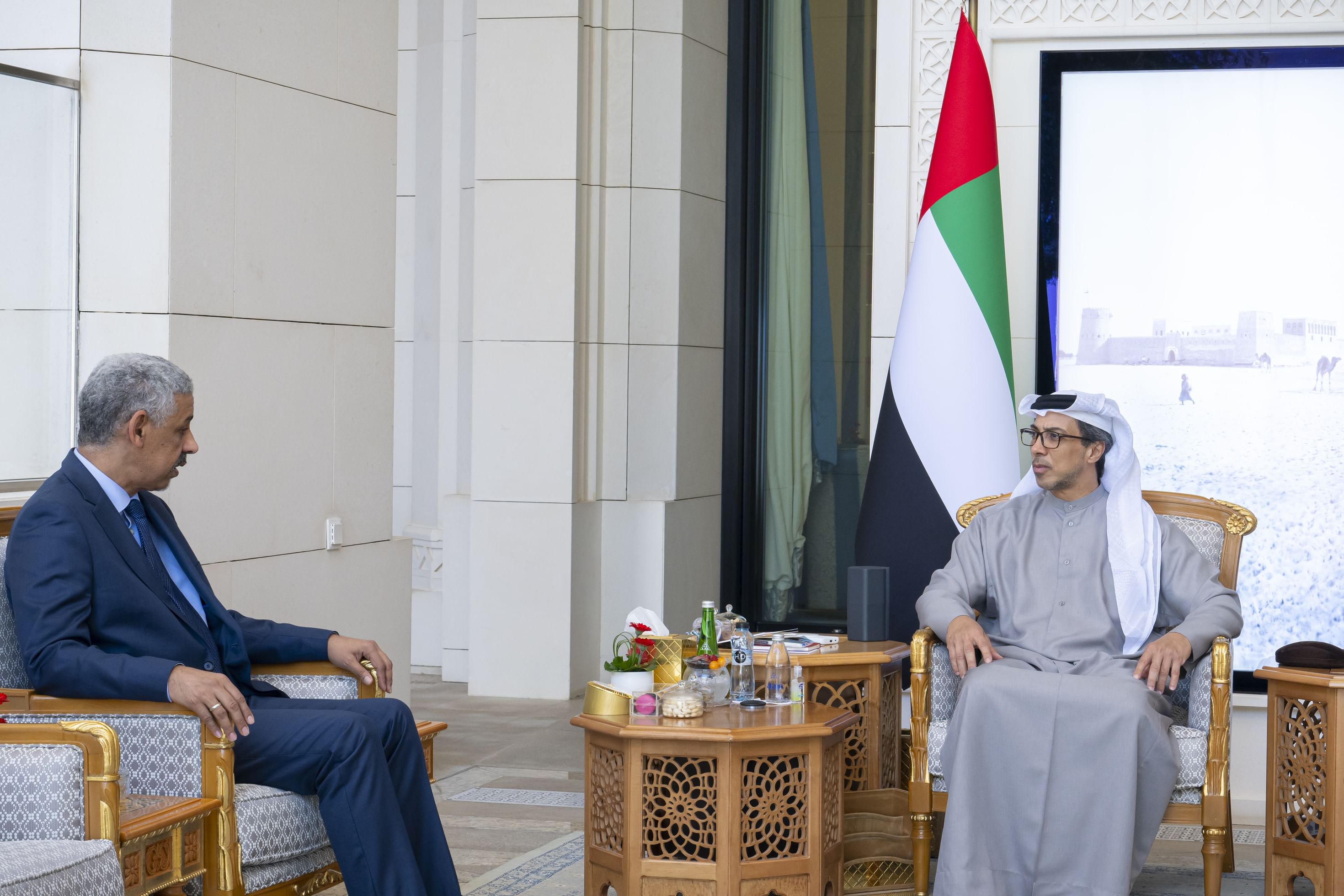 استقبل سمو الشيخ منصور بن زايد آل نهيان، نائب رئيس الدولة، نائب رئيس مجلس الوزراء، رئيس ديوان الرئاسة، في "قصر الوطن" بأبوظبي، معالي الدكتور سيدي ولد التاه، مدير عام المصرف العربي للتنمية الاقتصادية في إفريقيا.