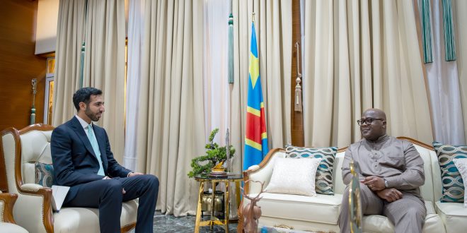 استقبل فخامة فيليكس تشيسيكيدي، رئيس جمهورية الكونغو الديمقراطية، معالي الشيخ شخبوط بن نهيان آل نهيان، وزير دولة، وذلك خلال زيارة عمل يقوم بها معاليه إلى العاصمة كينشاسا.