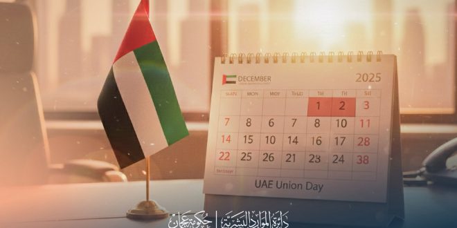 أعلنت دائرة الموارد البشرية لحكومة عجمان أن يومي الاثنين والثلاثاء 1 و2 ديسمبر المقبل عطلة عيد الاتحاد لموظفي حكومة عجمان، على أن يستأنف الدوام الرسمي يوم الأربعاء 3 ديسمبر 2025.