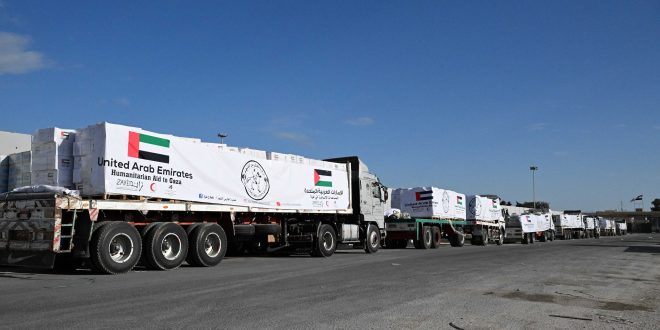 الإمارات تسير أكثر من 250 قافلة تحمل 1.6 مليون طرد مساعدات لغزة