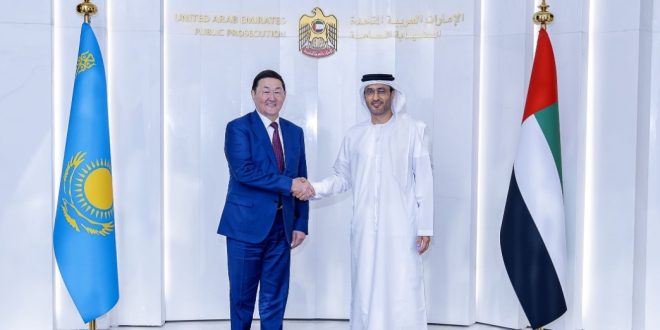 استقبل معالي المستشار الدكتور حمد سيف الشامسي، النائب العام للاتحاد، اليوم الجمعة الموافق الـ28 من نوفمبر 2025، معالي بيريك أصيلوف، المدعي العام لجمهورية كازاخستان، والوفد المرافق له وذلك في مقر مكتب النائب العام والنيابات الاتحادية بأبوظبي.