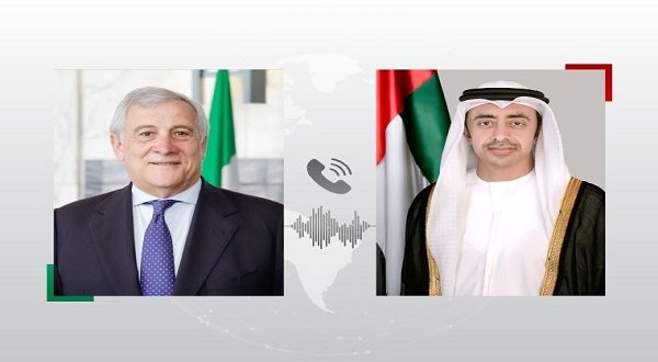 بحث سمو الشيخ عبدالله بن زايد آل نهيان، نائب رئيس مجلس الوزراء وزير الخارجية، اليوم الخميس، 4 ديسمبر 2025، خلال اتصال هاتفي مع معالي أنطونيو تاجاني، نائب رئيس الوزراء وزير الخارجية والتعاون الدولي في الجمهورية الإيطالية، العلاقات الثنائية بين دولة الإمارات والجمهورية الإيطالية وسبل تعزيزها بما يخدم المصالح المتبادلة للبلدين الصديقين.