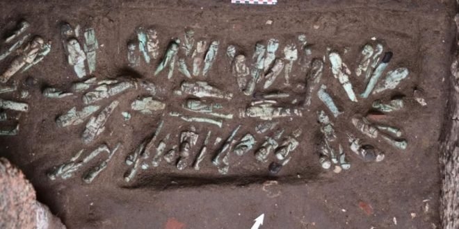 وأوضح بايرودو، أن الاكتشاف جرى في 9 أكتوبر الماضي داخل قبر ضيق يحتوي على تابوت جرانيت ضخم غير منقوش، مشيراً إلى أن التماثيل كانت مرتبة بعناية على شكل نجمة حول حفرة شبه منحرفة، وفي صفوف أفقية في قاعها، ما يعكس طقوس دفن متقنة تعود إلى تلك الحقبة.