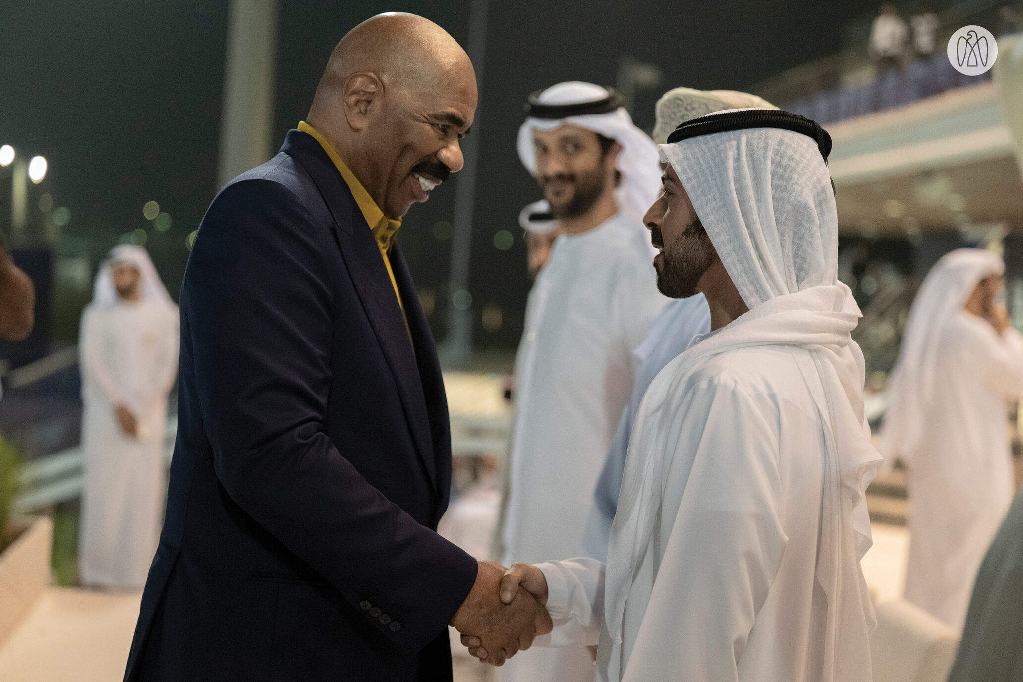 كما شهد الأمسية معالي الشيخ زايد بن حمد بن حمدان آل نهيان نائب رئيس مجلس إدارة "جمعية الإمارات للخيول العربية"، والشيخ أحمد بن حمدان بن محمد آل نهيان رئيس اتحاد الشراع والتجديف، والشيخ خليفة بن محمد بن خالد آل نهيان رئيس مجلس إدارة جمعية واجب التطوعية.