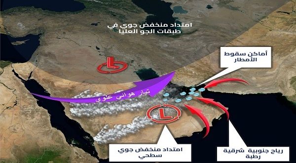 وأضاف: "تكون الرياح جنوبية شرقية إلى شمالية شرقية، تتحول أحياناً إلى شمالية غربية، وتراوح سرعتها بين الخفيفة والمعتدلة مع نشاط لافت خاصة أثناء وجود السحب، فيما قد تتسبب في إثارة الغبار على بعض المناطق الداخلية والبرية نتيجة زيادة سرعتها على فترات".