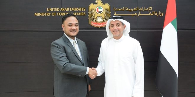 تسلّم سعادة الشيخ مكتوم بن بطي آل مكتوم، مدير مكتب وزارة الخارجية في دبي، البراءة القنصلية من سعادة امبروسيو بريان انسيسو، القنصل العام لجمهورية الفلبين في دبي والإمارات الشمالية، وذلك خلال لقاء عُقد بمكتب وزارة الخارجية في دبي.