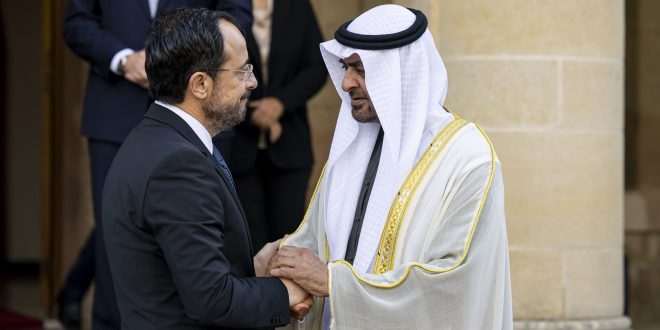 بحث صاحب السمو الشيخ محمد بن زايد آل نهيان رئيس الدولة "حفظه الله" وفخامة نيكوس خريستودوليدس رئيس جمهورية قبرص، اليوم، مختلف جوانب التعاون والعمل المشترك بين البلدين وفرص تعزيزهما خاصة في المجالات الاقتصادية والتنموية بما يخدم مصالحهما المشتركة، وذلك في إطار الشراكة الإستراتيجية الشاملة التي تجمع البلدين.