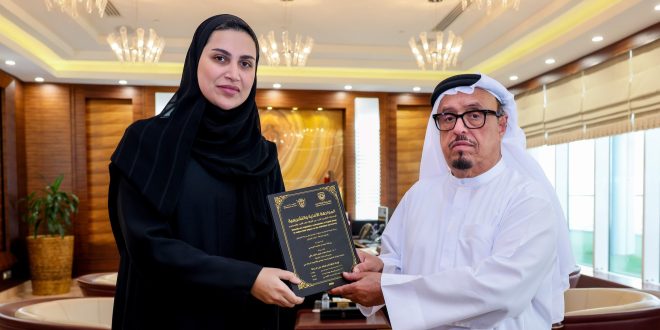 وتوجه معاليه بالشكر إلى الملازم أول روضة حمدان، خلال استقباله لها بمكتبه، على هذا الإهداء القيم، مشيدا بموضوع رسالتها وأهميته، ومتمنيا لها التوفيق.