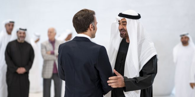 ورحب سموه ــ خلال اللقاء الذي جرى في متحف زايد الوطني في أبوظبي ــ بفخامة الرئيس الفرنسي.. وتبادل معه التهاني بمناسبة قرب حلول العام الجديد متمنيين للبلدين وشعبيهما دوام التقدم والازدهار.