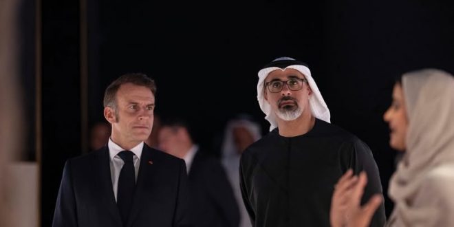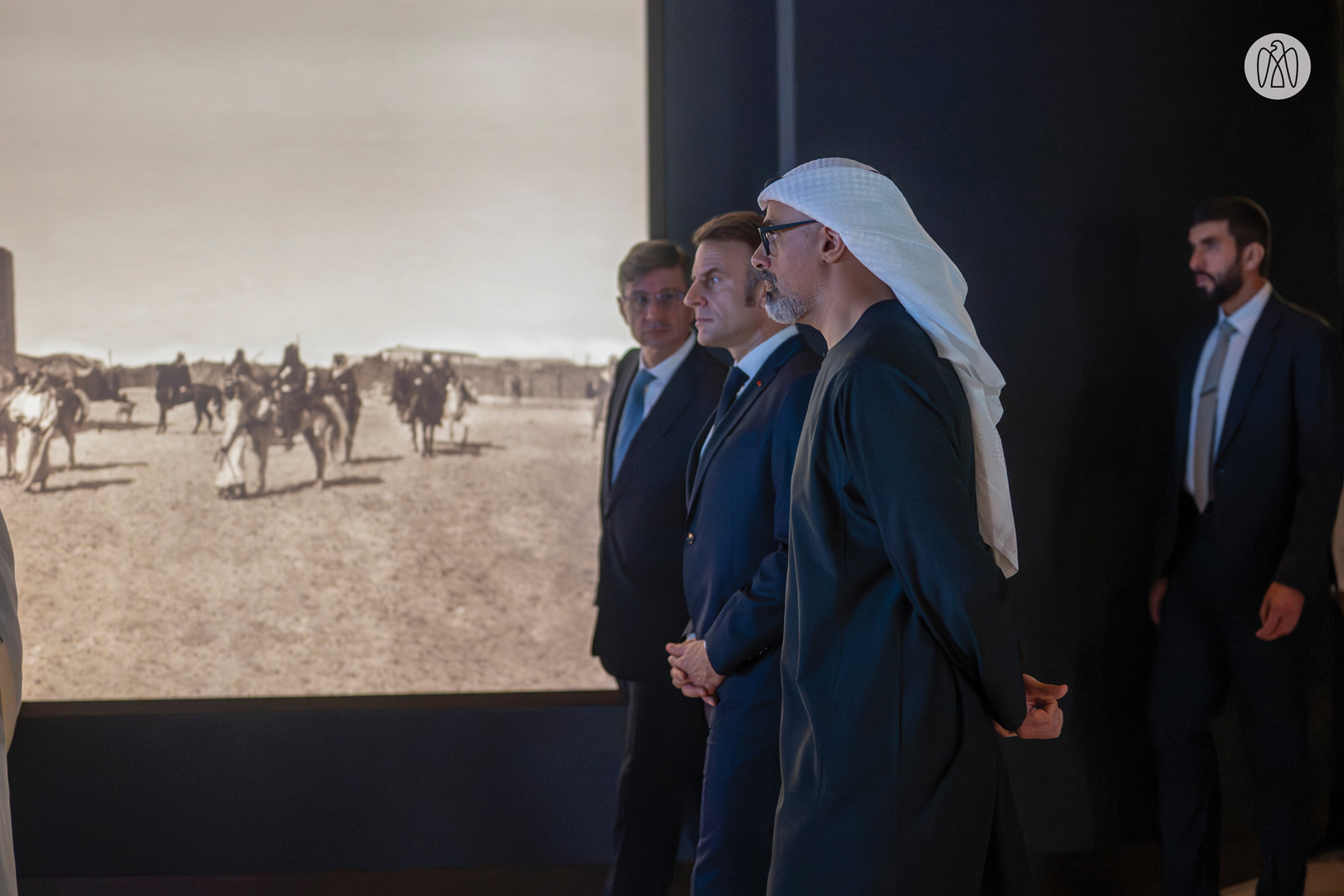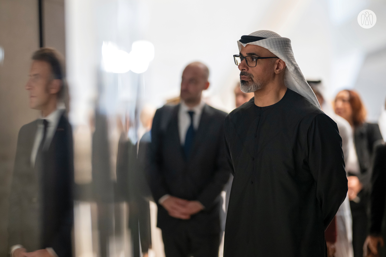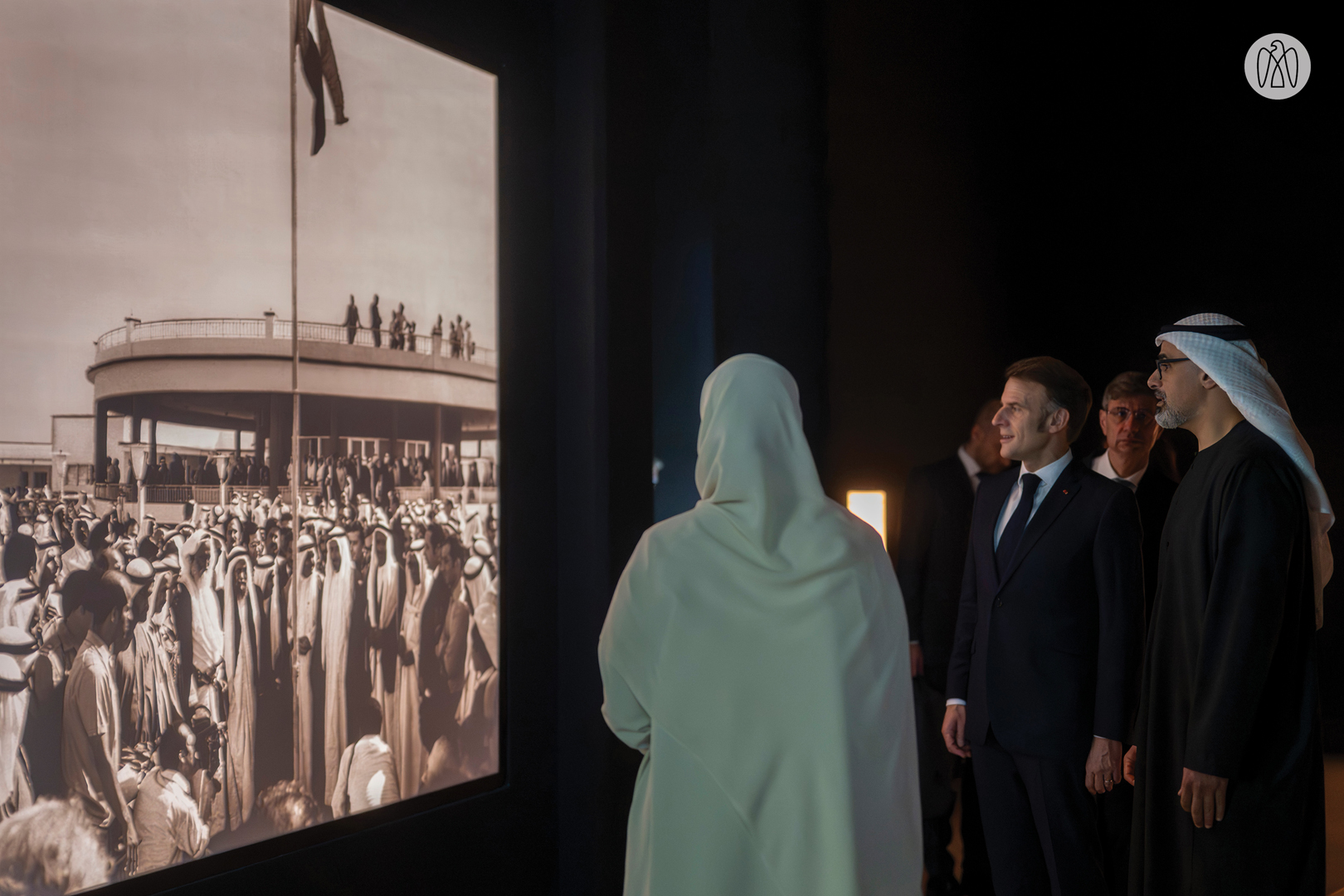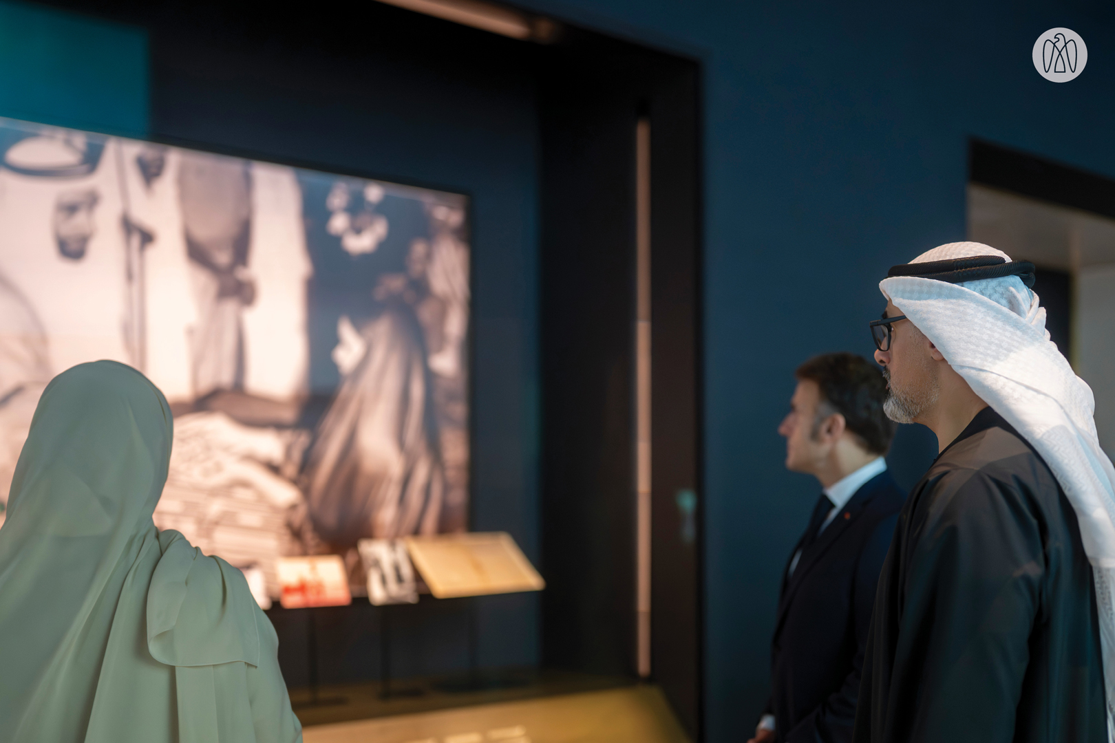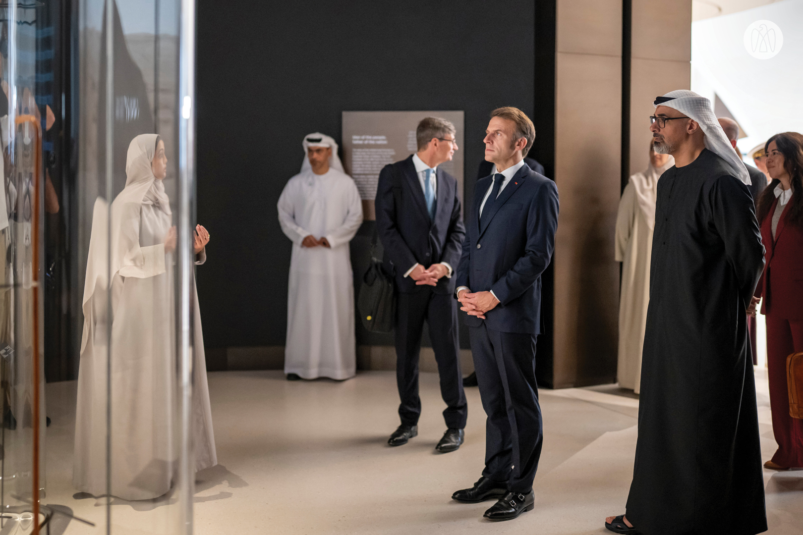 زار فخامة إيمانويل ماكرون، رئيس الجمهورية الفرنسية، متحف زايد الوطني في المنطقة الثقافية بجزيرة السعديات، يرافقه سمو الشيخ خالد بن محمد بن زايد آل نهيان، ولي عهد أبوظبي رئيس المجلس التنفيذي لإمارة أبوظبي.