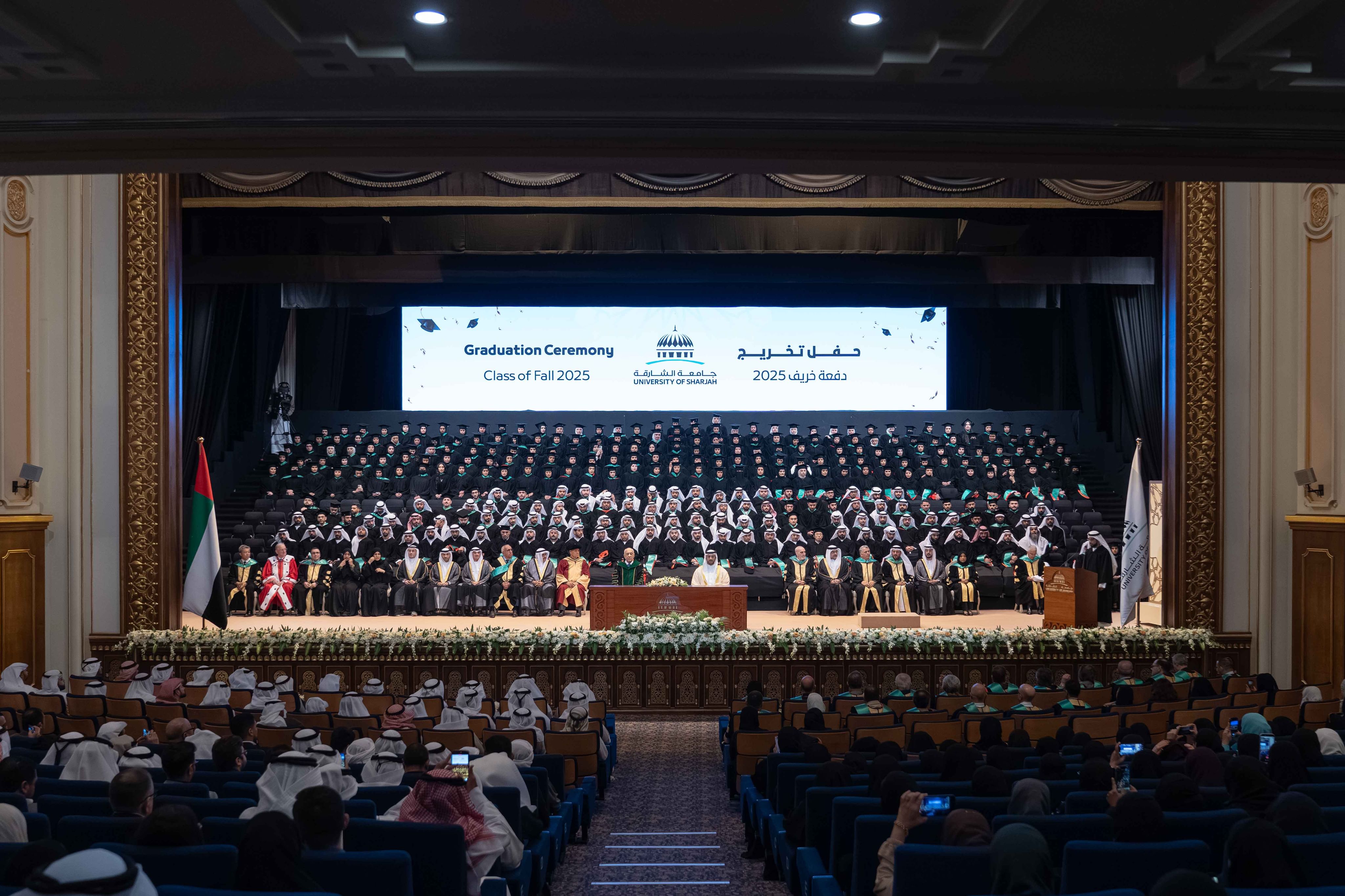 شهد سمو الشيخ سلطان بن أحمد بن سلطان القاسمي نائب حاكم الشارقة، رئيس جامعة الشارقة، اليوم، حفل تخريج طلبة الدراسات العليا بجامعة الشارقة دفعة خريف 2025، والبالغ عددهم 394 خريجاً وخريجة، وذلك في قاعة المدينة الجامعية.
