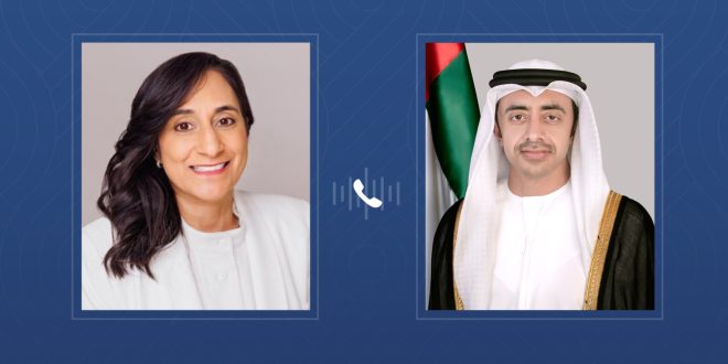 بحث سمو الشيخ عبدالله بن زايد آل نهيان، نائب رئيس مجلس الوزراء وزير الخارجية، خلال اتصال هاتفي مع معالي أنيتا أناند، وزيرة خارجية كندا، علاقات التعاون بين البلدين وسبل تعزيزها بما يخدم مصالحهما المشتركة.